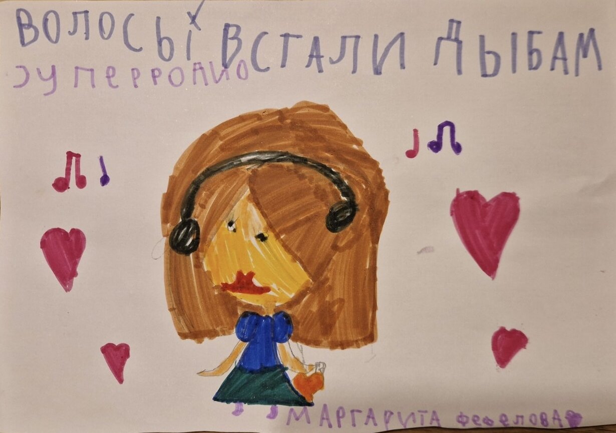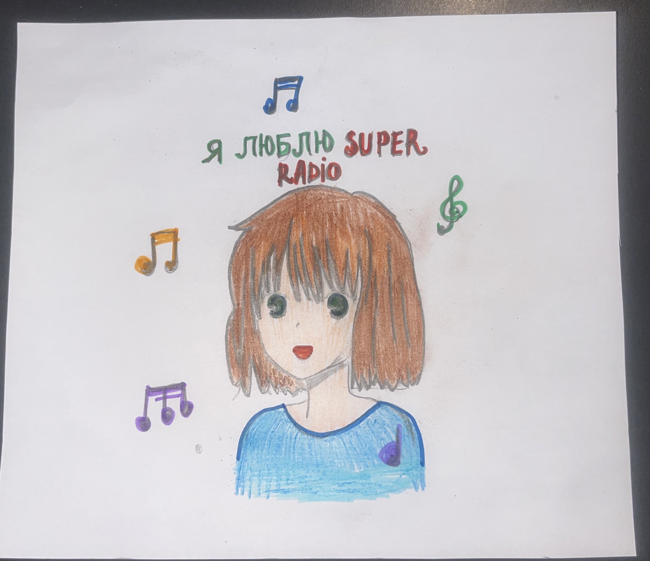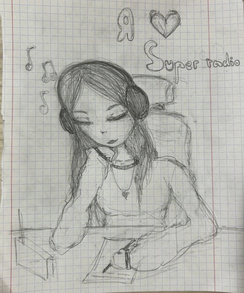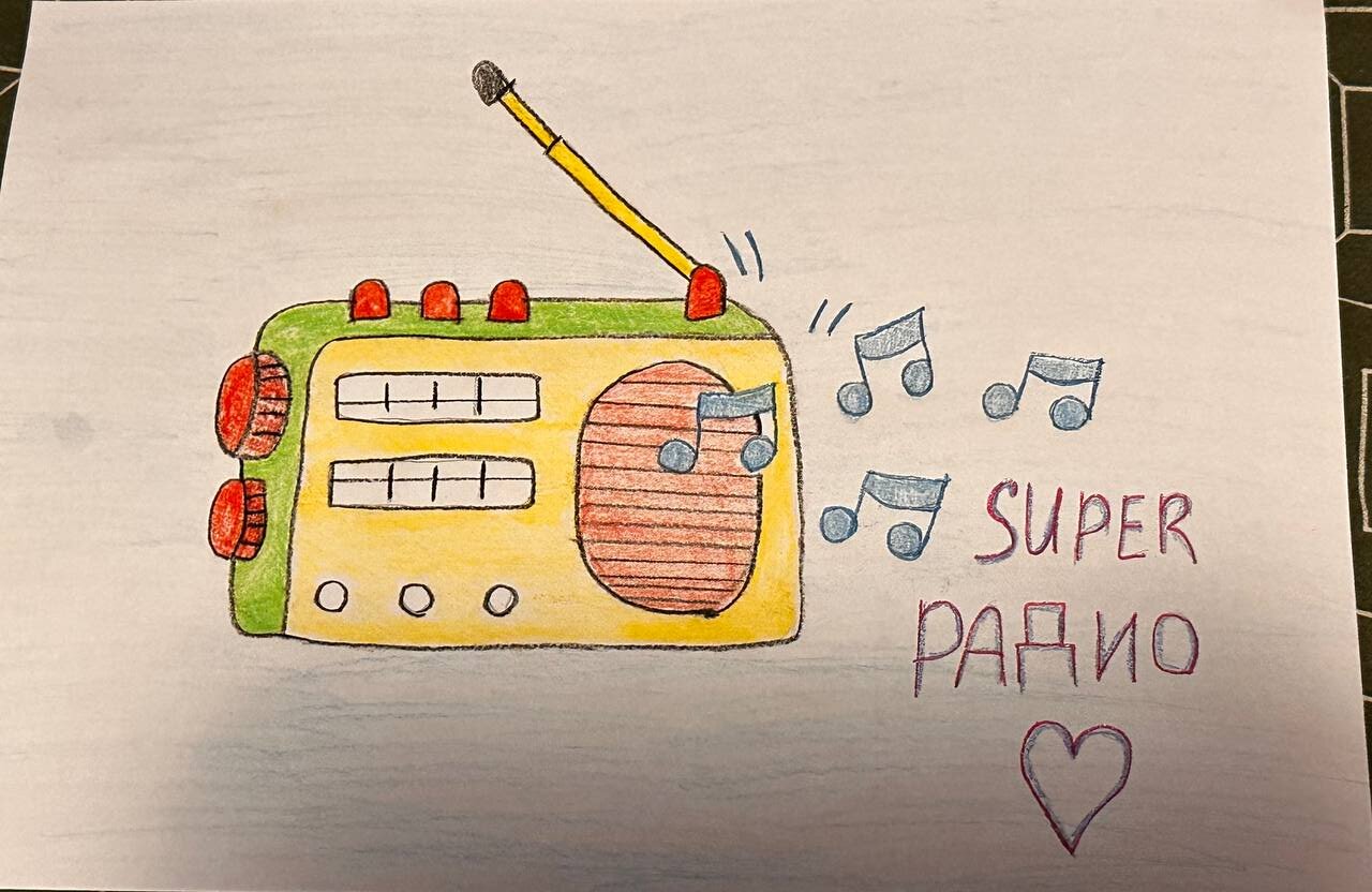Нарисовала дочь София 8 лет. Любим слушать Super радио и вместе подпеваем любимые песни